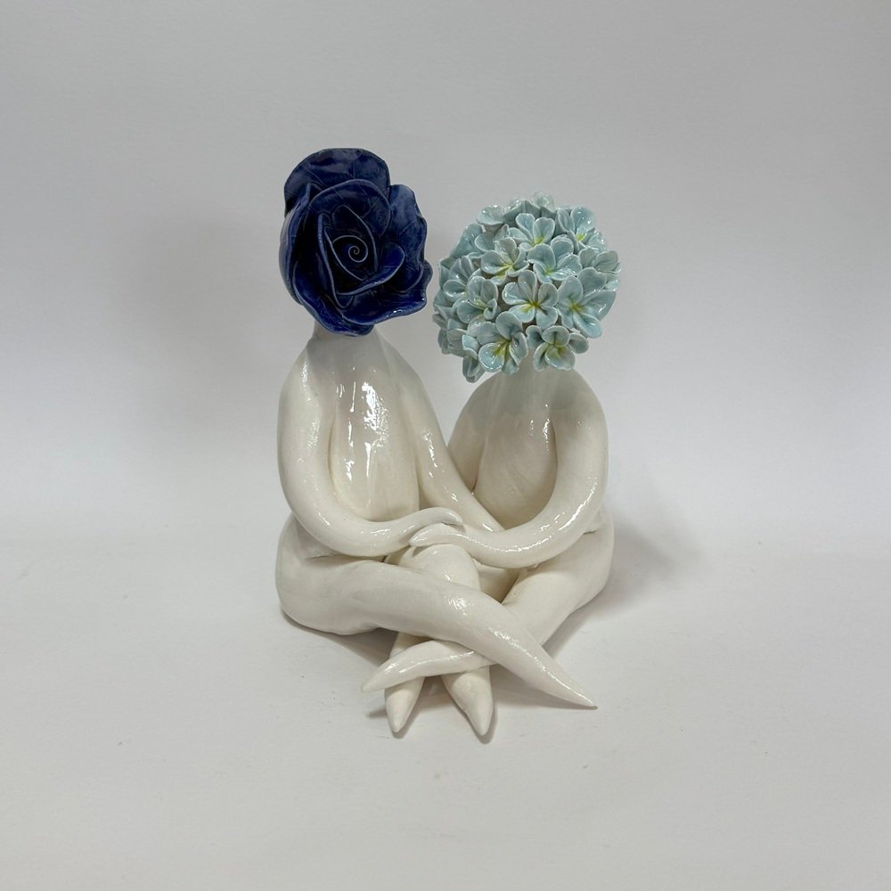 Mr & Mrs Couple Sculpture is handmade in Porcelain clay with underglaze colours and clear glazed.