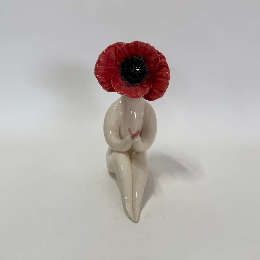 Little Miss Poppy holding a butterfly is handmade in porcelain with under-glaze colours and a clear glaze finish.  13cmH x 11cmL